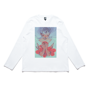 • "Red Roses" Cut and Sew Wide-body Long Sleeved Tee White