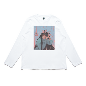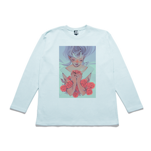 • "Pink Hair Ribbon" Taper-Fit Heavy Cotton Long Sleeve Tee Sky Blue