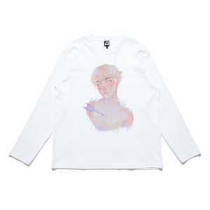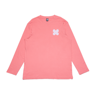 "Calm" Cut and Sew Wide-body Long Sleeved Tee White/Salmon Pink