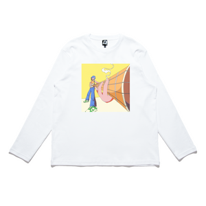 • "Bass Burn" Cut and Sew Wide-body Long Sleeved Tee White