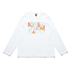 • "Burning Out" Cut and Sew Wide-body Long Sleeved Tee White