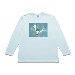 "Raining Outside" Taper-Fit Heavy Cotton Long Sleeve Tee Mint