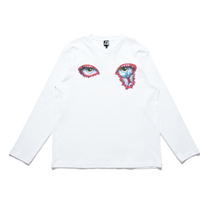 "Eyes" Cut and Sew Wide-body Long Sleeved Tee White