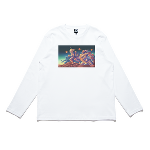 "Crossing River" Cut and Sew Wide-body Long Sleeved Tee White