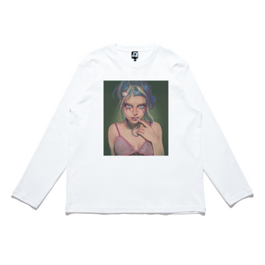 "Girl" Cut and Sew Wide-body Long Sleeved Tee White