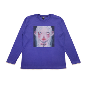 "Eye Trauma" Taper-Fit Heavy Cotton Long Sleeve Tee Purple