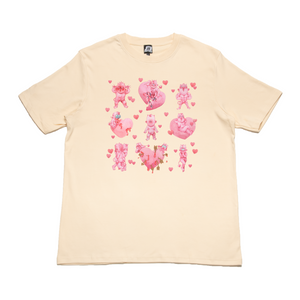 "Happy Holislay" Cut and Sew Wide-body Tee Beige/Salmon Pink