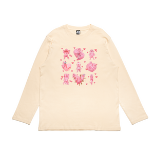 "Happy Holislay" Cut and Sew Wide-body Long Sleeved Tee Beige/Salmon Pink