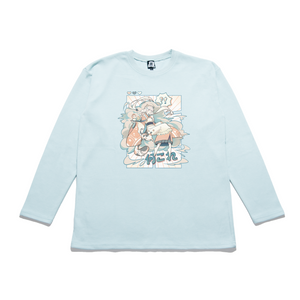 "Isekai" Taper-Fit Heavy Cotton Long Sleeve Tee Mint/Beige