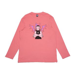 "Demon" Cut and Sew Wide-body Long Sleeved Tee Salmon Pink