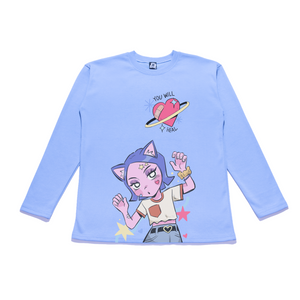 "Classic Mew" Taper-Fit Heavy Cotton Long Sleeve Tee Sky Blue