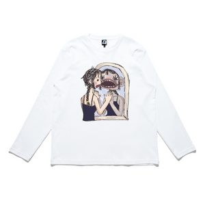 "Mirrorr" Cut and Sew Wide-body Long Sleeved Tee White