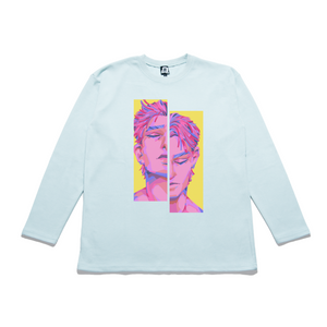 "Waiting" Taper-Fit Heavy Cotton Long Sleeve Tee Sky Blue