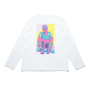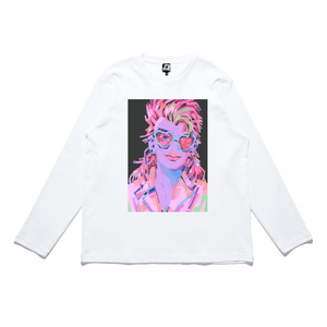 "80's Techno" Cut and Sew Wide-body Long Sleeved Tee White