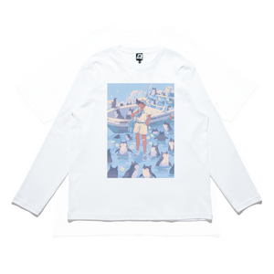 • " By The Shore " Cut and Sew Wide-body Long Sleeved Tee White