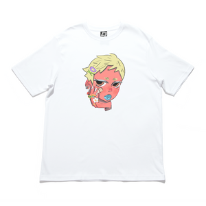"Blue Lipstick Pixie" Cut and Sew Wide-body Tee White