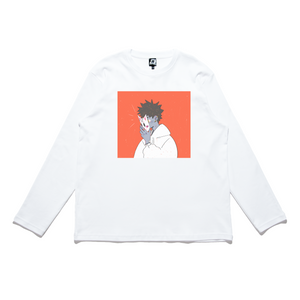 "Kitsune Mask" Cut and Sew Wide-body Long Sleeved Tee White