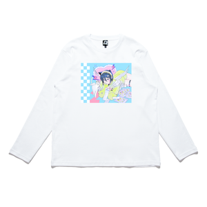 "Catboy Paradise" Cut and Sew Wide-body Long Sleeved Tee White