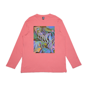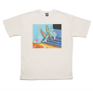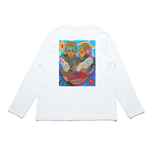 • "Rainbow Trout Cyberspace" Cut and Sew Wide-body Long Sleeved Tee White/Salmon Pink