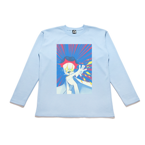 "Sparkle Boom" Taper-Fit Heavy Cotton Long Sleeve Tee Sky Blue