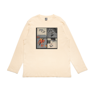 "I've been to many places, slept in many places" Cut and Sew Wide-body Long Sleeved Tee Beige