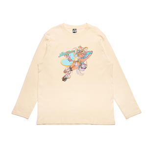 • "Heart Cowgirl" Cut and Sew Wide-body Long Sleeved Tee Beige