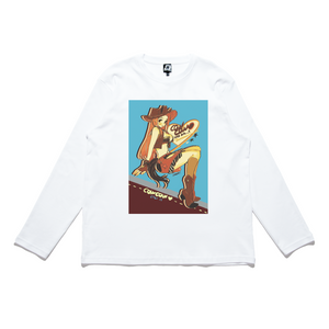 • "Cow Cow Girl" Cut and Sew Wide-body Long Sleeved Tee White