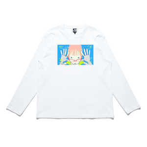 "Reg Glasses Gal" Cut and Sew Wide-body Long Sleeved Tee White/Beige