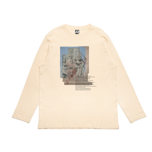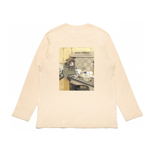 "Cooking" Cut and Sew Wide-body Long Sleeved Tee Beige/White